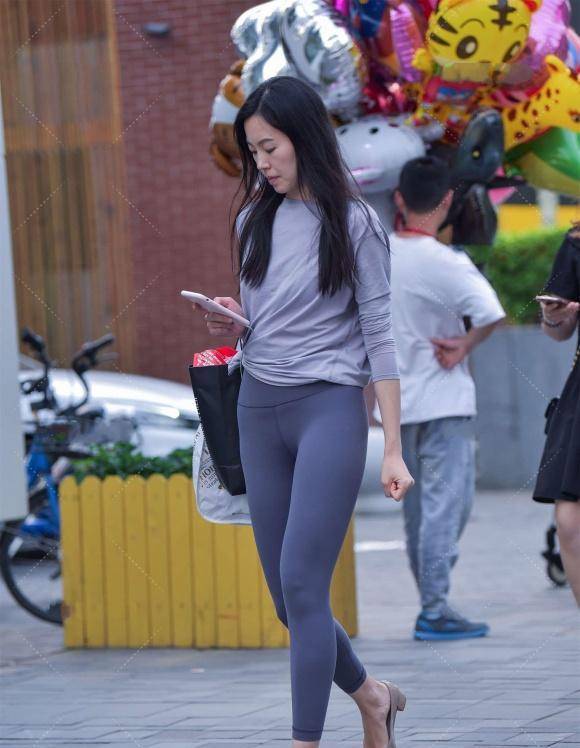 浅灰色的长袖衫搭配深灰色的健美裤在色彩上很鲜明,美的有层次感。深灰色健美裤穿让富有弹性的面料穿出了身材的曲线,又衬托出了修长的大腿,低调中带着运动的气息,优雅美丽又感性。