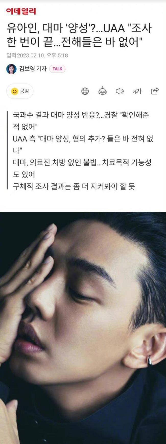 经纪公司表示,“如之前说的那样,刘亚仁除了接受了一次调查之外无法确认,刘亚仁也没被警察再叫去调查,第一次传唤调查之后也没有听到警察新的追加事项。是否追加嫌疑、追加疑惑,我们也不知道,大麻阳性的事情也是第一次听到。如果警察传唤我们会积极协助调查,除此之外无话可说。”