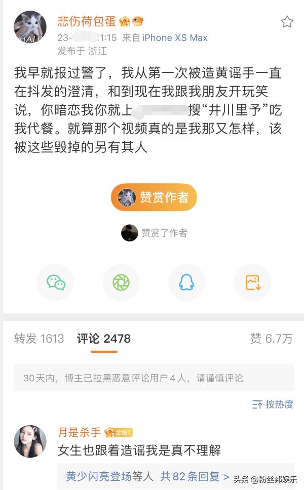 早就报过警了,井川里予破防怒怼黑粉,你们“黄谣”造得少了?
