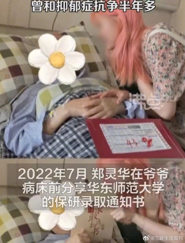 2022年9月份,郑灵华开始了研究生生活。然而十月底,她的抑郁症再次复发,她不得不中止学业回到杭州治疗。