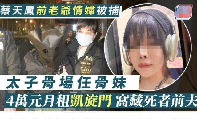 警方透露,该女子系蔡天凤前公公的情夫,被控有份参与蔡天凤碎尸案,案发后还在尖沙咀凯旋门租住一个单位,窝藏蔡天凤的前夫。