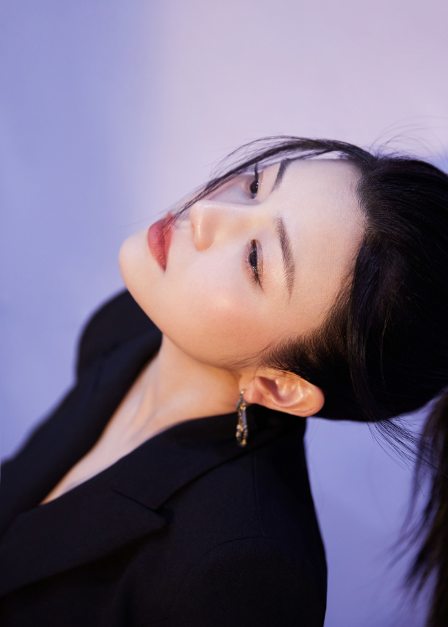 工作室晒出一组陈妍希的写真美照,照片中,陈妍希扎着高马尾,穿黑色西装裙造型干练利落,一双白皙美腿吸睛。