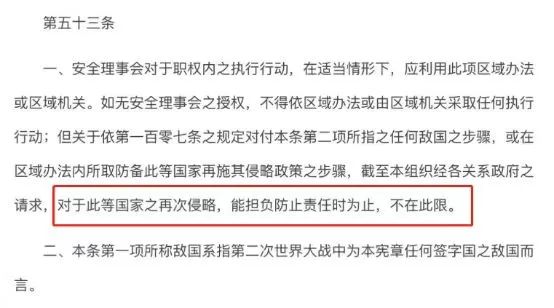 因为德国在上个世纪把全人类拖下水的“壮举”,联合国宪章第53条,有着针对他和他日本朋友的“敌国条款”,原文念着太拗口,朋友们自己到文章中去看: