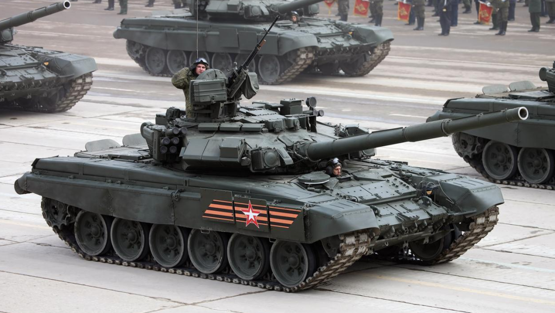而他们的对面,将是俄罗斯的T-64/72/80/90系列坦克,以及少量的T-14坦克。(下图为T-90)