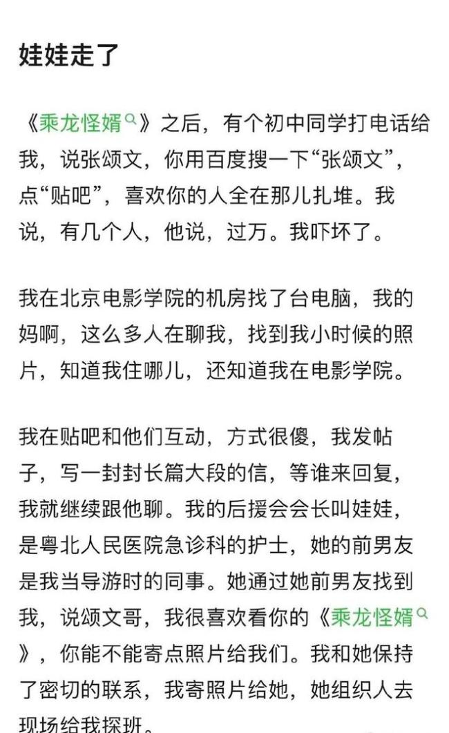 近日,张颂文在专访中分享了自己与早年粉丝后援会会长娃娃的故事。