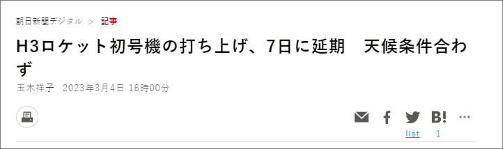 再次延期 日本新型火箭H3重新发射时间推迟至3月7日