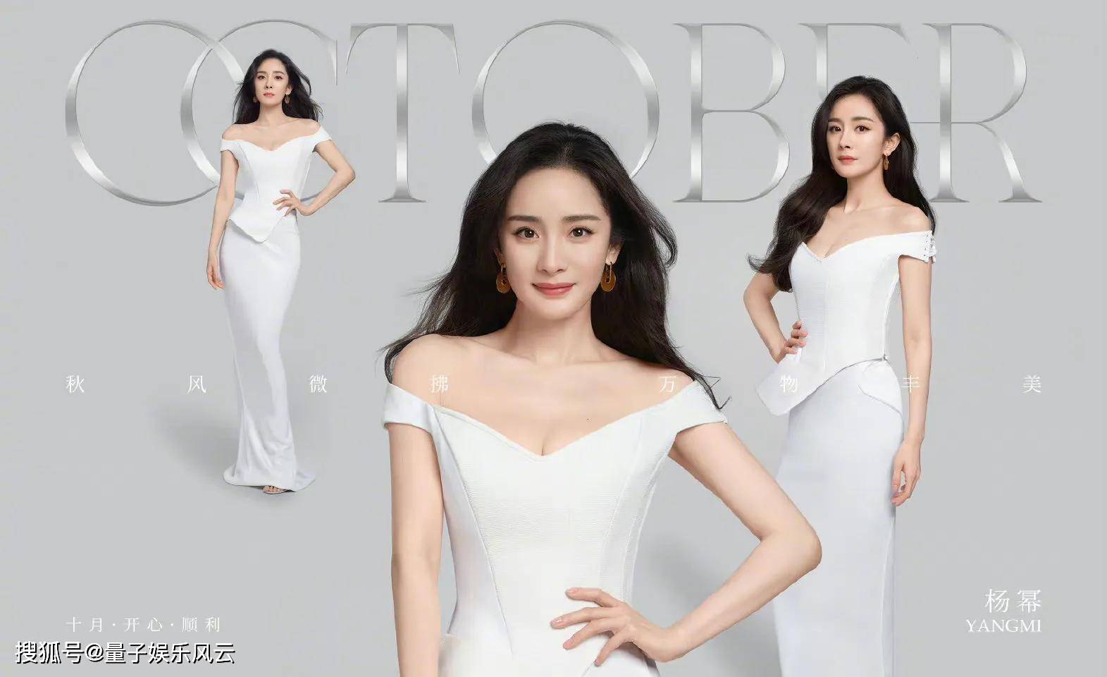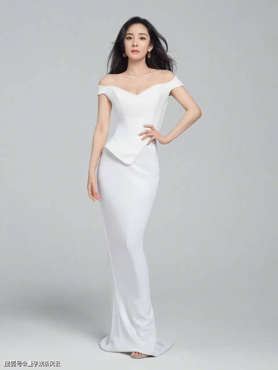杨幂白色露肩长裙大片,这性感火辣的身材简直就是人间尤物