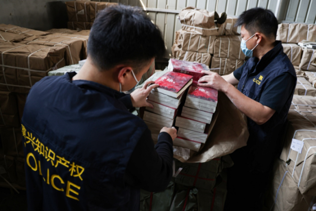 在嘉兴市委宣传部、市“扫黄打非”办的指导下,2023年3月1日至3月3日,嘉兴市公安局食药环侦支队、侦查中心等警种会同嘉兴市公安局南湖区分局组织110余名警力,雷霆出击,赴省外4省6地开展统一收网行动,抓获犯罪嫌疑人35名,捣毁非法印刷企业2家,仓储、销售非法侵权复制品窝点10处,查扣侵权复制品成品多达72万余册,码洋3000余万元,全案涉案金额高达1.2亿元。