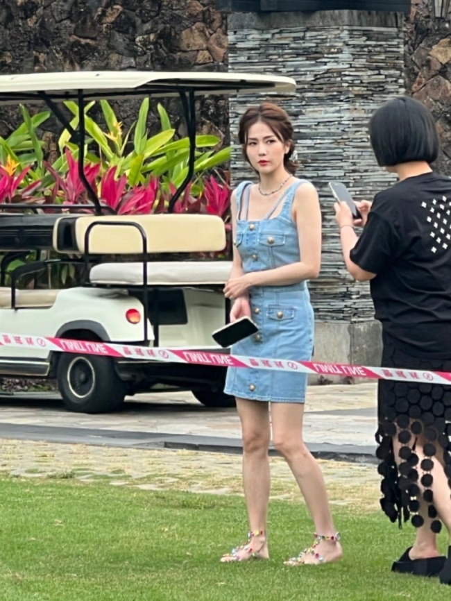 董璇泳池旁喝椰子水好惬意 穿优雅礼裙身姿曼妙