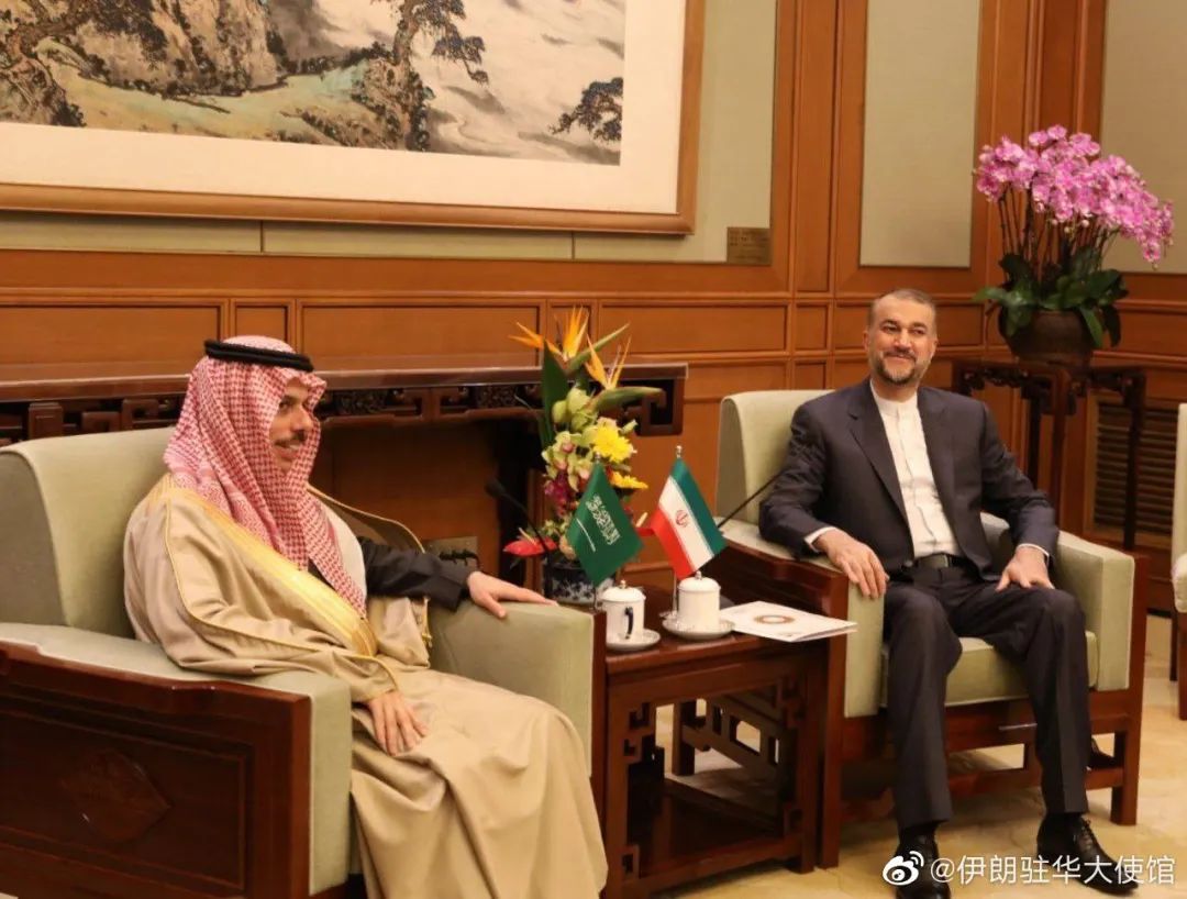 上个月3月6日至10日,中国做东,拉上沙特与伊朗和谈,中沙伊三方在北京神不知鬼不觉地谈了5天,直到3月10日突然发布三国联合声明,全世界才知道,原来沙特和伊朗这一对7年多没有外交联系的世仇,悄悄在中国斡旋下和解了。据新华社报道,伊朗总统办公室日前宣布,伊朗总统莱希已经收到了沙特国王萨勒曼的访问邀请。伊朗官方在社交媒体发文说,萨勒曼在来信中欢迎“两个兄弟般的国家”同意恢复外交关系,邀请莱希访问利雅得,并呼吁两国加强经济和地区合作。莱希对邀请表示欢迎,强调伊朗已就同沙特扩大关系做好准备。沙特伊朗这种互动表明,双方关系进展迅速,已发展到元首互访和互称兄弟国家的地步了。如此进展,既有形势发展内在动力作用,但更重要的是中国的斡旋之功。第二件大事:沙特外交大臣和伊朗外长在北京确认恢复外交关系据央视新闻报道,2023年4月6日,国务委员兼外长秦刚在北京集体会见来华举行沙伊外长会晤的沙特外交大臣费萨尔、伊朗外长阿卜杜拉希扬。沙特和伊朗,两国外长确认恢复外交关系的协议,都是在中国外长的见证下签署的,这既是两国对中国的巨大信任,也说明了中国的巨大影响力,以及在沙伊两国恢复关系过程中所起到的关键作用。事实上,根据国务委员兼外长秦刚的表态,在中国主持下,沙特和伊朗恢复外交关系是在签署了“北京协议”的明确路线图和时间表的基础上完成的。换句话说,中国在给双方做担保的同时,三方在事项设置、时间安排上都有明确要求,说白了都是白纸黑字要落地的。中国的这一番操作,可谓是惊天地泣鬼神,全世界都看傻了。关于这一点,我们只要看看沙特外务大臣和伊朗外长会晤时那笑得合不拢嘴的状态,就知道他们内心是多么的高兴了。