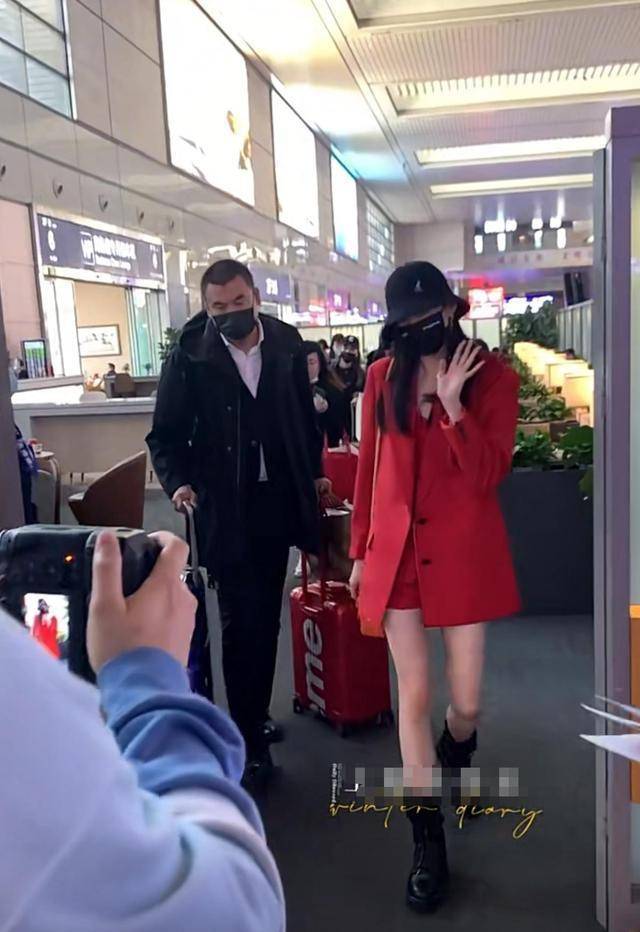 关晓彤本身就是170以上的身高,在人群中很抢眼,因为红色衣服的原因,显得关晓彤的腿又白又长,身边助理跟随拉几个行李箱。