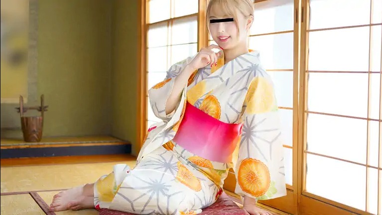 穿着浴衣的她是在温泉旅馆被调教,虽然胸部不大,不过白晰的皮肤配上染得一头金的长发造型非常吸睛,虽然眼睛画了黑线,但这样的女孩如果不穿浴衣、用辣妹的造型也很适合吧: