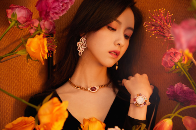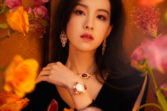 陈都灵一袭绿色抹胸长裙 站在柳树下宛若自然精灵