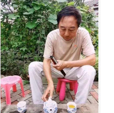 原标题:冯巩在豪宅大院喝茶,手上青筋凸起后脑勺掉发,用破烂木板当茶桌