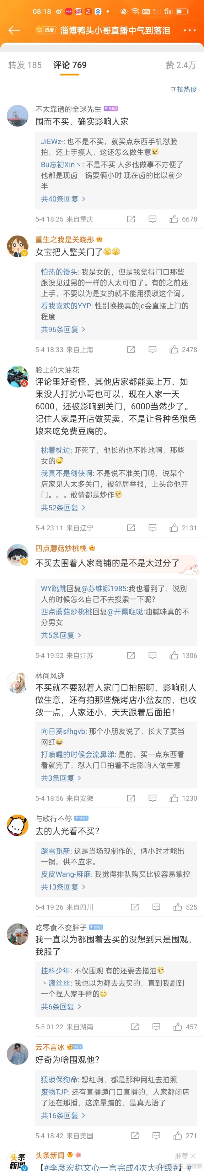 延伸阅读:小哥,你怎么了?淄博鸭头小哥直播中气到落泪