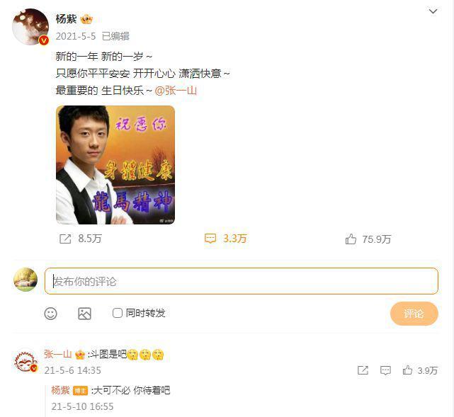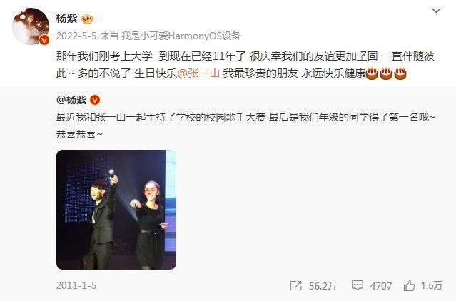 【确实不是情侣!杨紫连续7年为张一山庆生,这才是老友!】5月5日,杨紫在社交平台上发文为张一山庆生,她也为此配文:"又是一年生日快乐我们不变",不仅艾特了张一山,而且还配上了三个蛋糕的表情包,可以看出她也十分的用心,再次彰显了她们之间感情深厚,受到了广泛的关注。