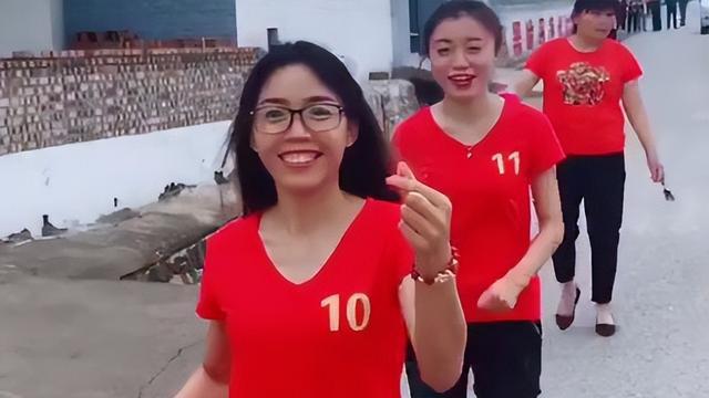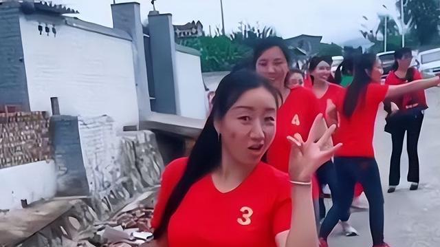 2018年7月,某短视频平台,一则11个姐姐穿着定制同款带数字的红色体恤接亲视频走红网络。