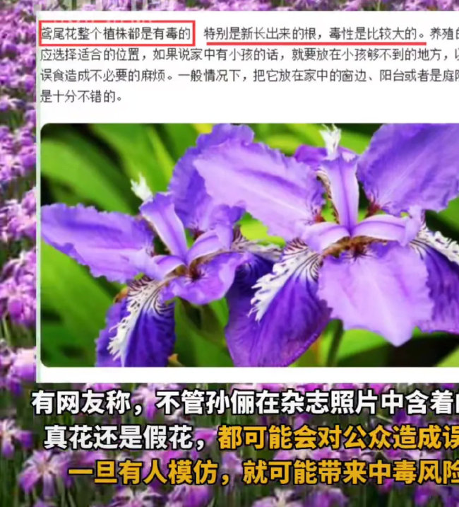 有网友认为孙俪作为公众人物,她的照片会误导普通人也用嘴含鸢尾花。