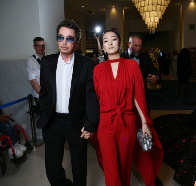 57岁巩俐红色裤装亮相戛纳红毯 与老公大方秀恩爱