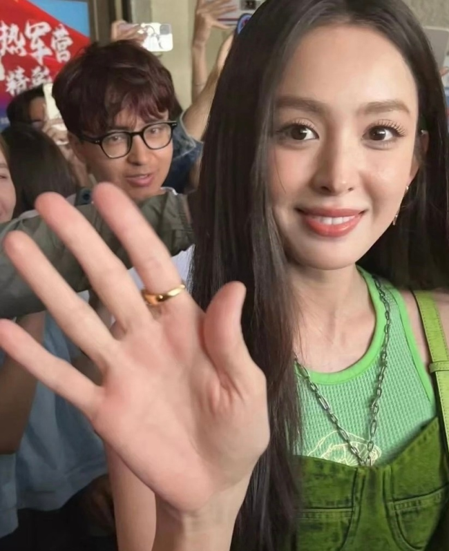 近日,有网友在社交平台晒出娜扎回新疆母校探望老师的照片。照片中,娜扎穿着绿色露腰套装,长发飘飘,和路人打招呼很是亲切,生图能打。