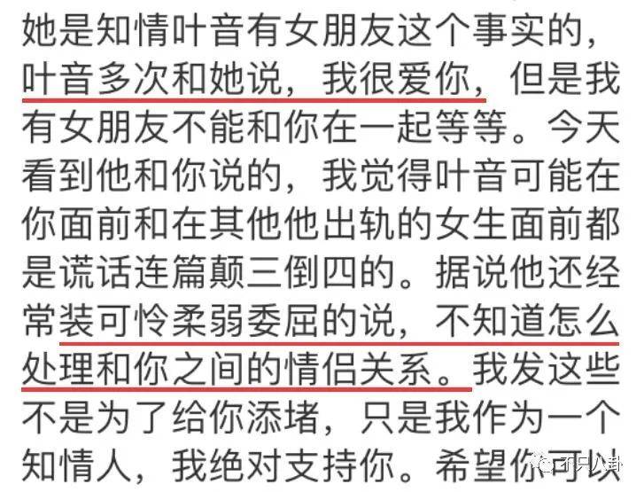 退一万步来讲,如果叶音的解释是真的,身边有一个相恋七年的女友,还能转过头背地里去给暗恋的人发暧昧消息,他难道真的觉得这样没问题?