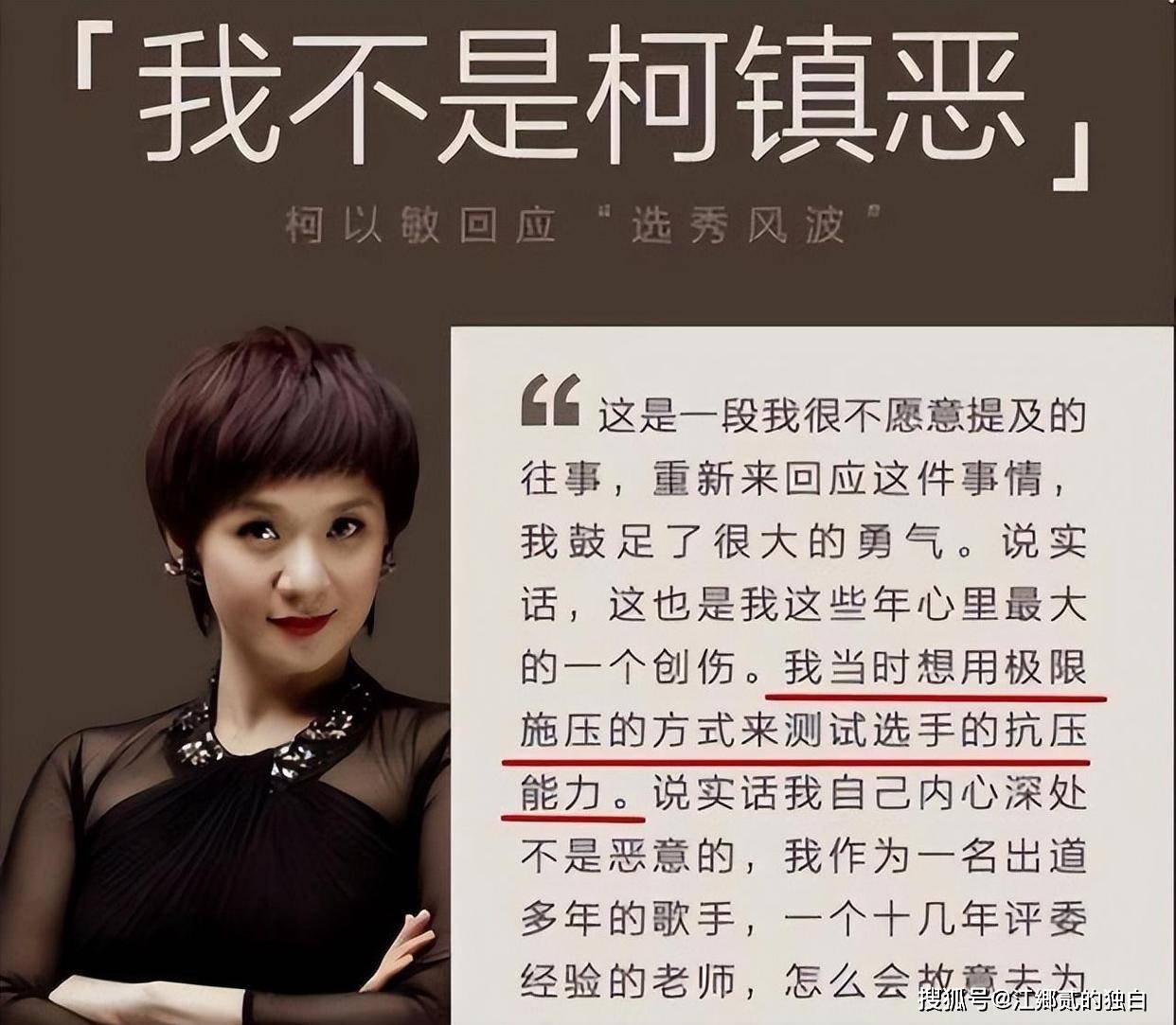熟悉柯以敏的网友都清楚,她一度是以毒舌著称的,作为曾经的超女评委,点评女选手时尖酸刻薄,后来后称为“柯镇恶”,导致比赛举办方出面道歉,将她清出评委人选。