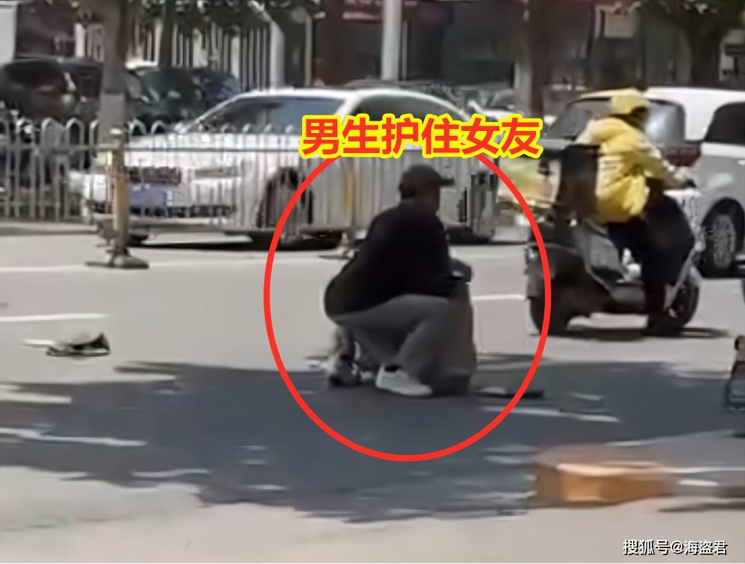 幸好男子很快反应过来,将自己的衣服下摆往外一拉,将女友的头和身体罩住。
