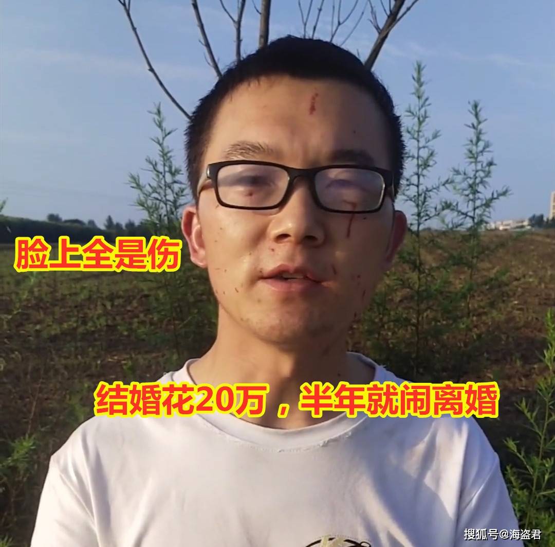 原标题:男子被妻子家暴,始终未还手成“花脸”:花20万结婚刚半年要离婚