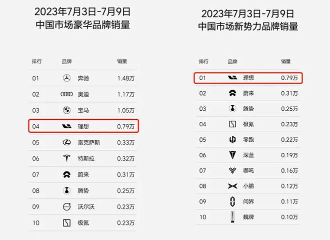 本周,理想汽车跻身中国市场豪华品牌销量前四,是榜单中排名最高的中国品牌。