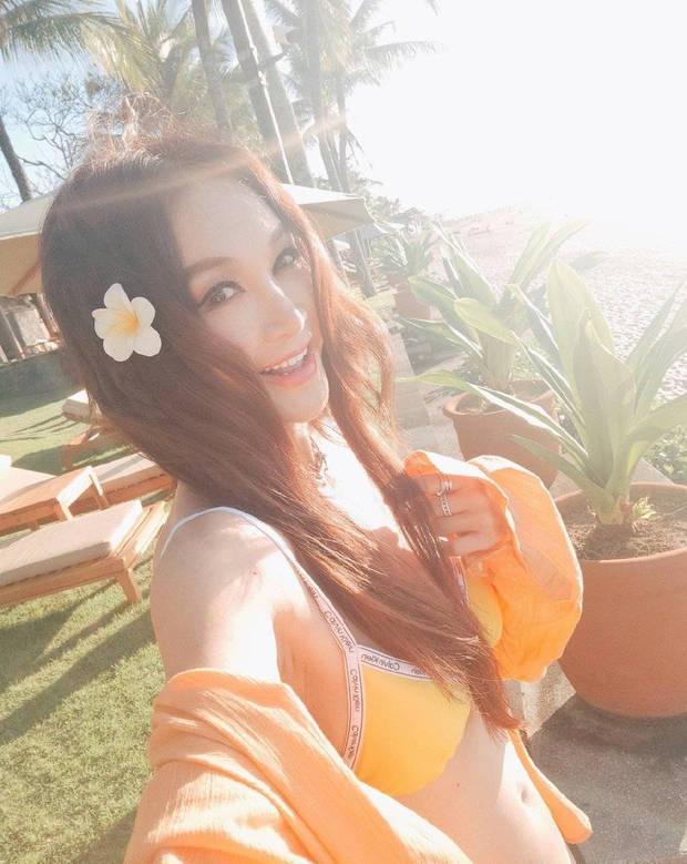 7月24日,温碧霞在社交平台晒出一组度假随拍,并配文“Such a beautiful day,美好的時光”。她头戴花朵,身穿橘色比基尼,大方秀身材曲线。