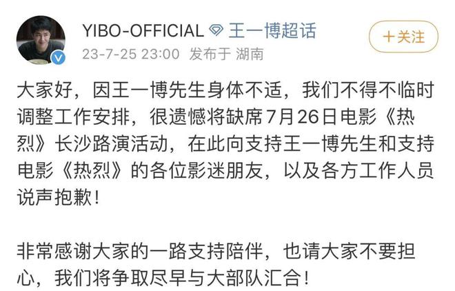 就在大家都好奇究竟是哪位圈内人的时候,有网友发现,原定于事发次日参加新电影《热烈》路演宣传的王一博突然宣布,因为身体原因不能按时出席,这未免有点太过凑巧了,便有网友将两件事连在一起,猜测被抓的会不会是王一博,因为已经寄进去了所以没办法出席活动。