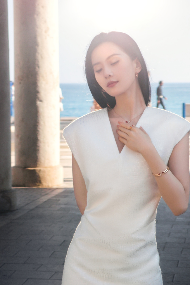 刘诗诗穿白裙身姿曼妙 沐浴阳光发丝飞扬