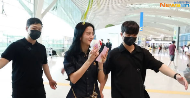 10日,金智秀承认恋情后现身于仁川机场,她穿着牛仔套装短裙,露出开朗笑容,不断与四面八方的粉丝与摄影记者打招呼,收下歌迷递上的信件,放送福利比着爱心,在入关以前还回头再次挥挥手问候。不仅如此,BLACKPINK于8日迎接团体成军7周年,Jisoo现身机场就手比着“7”的数字,团魂满满令歌迷看得很感动。