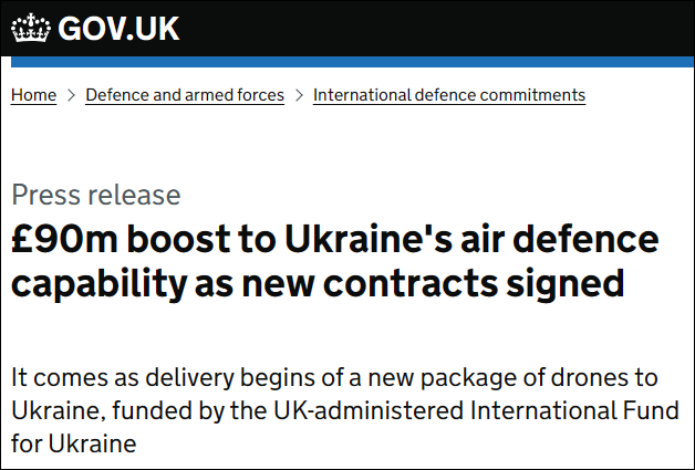 当地时间8月18日,英国国防部宣布,代表“乌克兰国际基金会”(IFU)签署了三份总价值超9000万英镑的防空设备合同,以援助乌克兰。