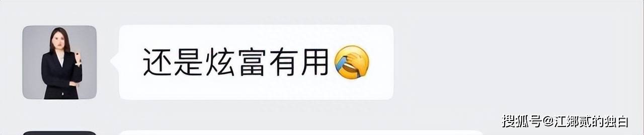 然而,这只是一段聊天记录,女子在高调炫富之后,又说出了一段意味深长的话语,原来她是故意引起别人注意的。