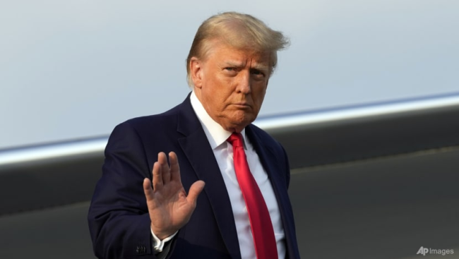 24日晚上7时,特朗普乘私人飞机抵达佐治亚州亚特兰大。图源:美联社