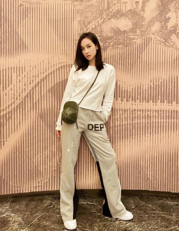 一身运动套装,看着是很舒适又时髦,其中这条裤子的设计很出色,裤脚是采用了拼接的设计,看着就很个性又潮了,还是拖地的长度,把本来腿长的优点无限放大了,好抢眼,再搭配白色运动鞋,造型足够好看!