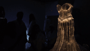 而且,这件裙子是固定在旋转台上的,刘亦菲无法移动,只能靠一些手臂的动作来衬托自我,才显得没有那么单调。