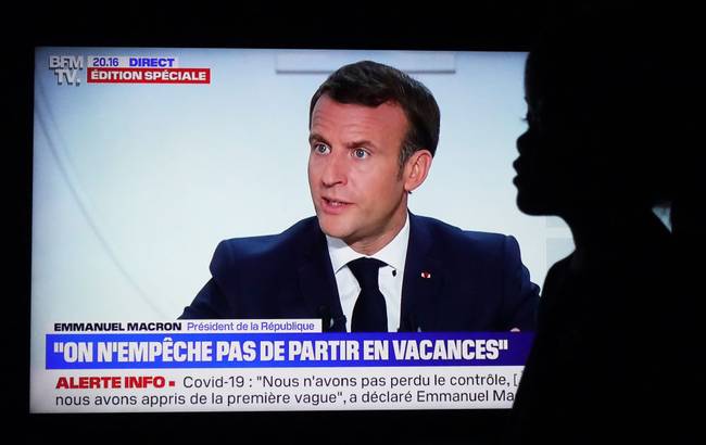 10月14日,观众在法国巴黎家中收看法国总统马克龙接受采访的电视节目。新华社记者高静摄