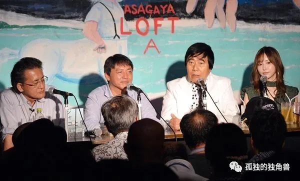 村西透(右二)上周举行Talk Live,北公次爆料书幕后写手本桥信宏(左起)、演出BBC纪录片的前《周刊文春》记者中村龙太郎、女优天使萌一同出席。