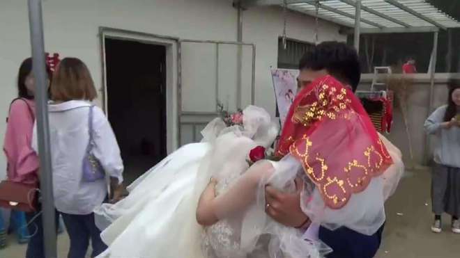 好不容易到达了新娘的家,却又被伴娘团拦在了门外,要求李某跟她们玩游戏,如果赢了就可以成功地接走新娘,或者是给她们一人一个大红包就能接走新娘。如果在古代的话,是伴娘要求新郎吟作对,她们满意了才能把新娘接走。演变到现代就是玩玩游戏猜猜谜语,李某还是非常聪明的,很快就一一破解了伴娘们的套路。伴娘们也不好过多地刁难他,只是告诉他,在农村新娘子出嫁的时候,从家里到婚车的距离是不能用脚沾地的。李某表示理解的把不是很重的王某抱起来走向婚车。