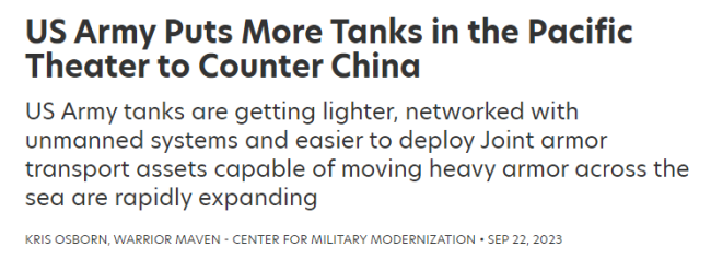 美国Warrior Maven网站22日以“美军在太平洋战区部署更多坦克以对抗中国”为题称,美国陆军坦克正在减重,美军更易于跨海运输重型装甲的联合装甲运输装备正在迅速扩大。