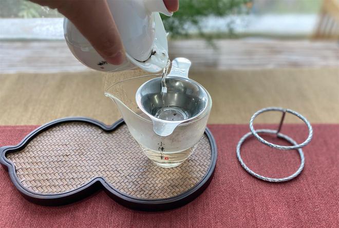 往公道杯上方,专门加上茶滤后,再去泡这些碎茶。