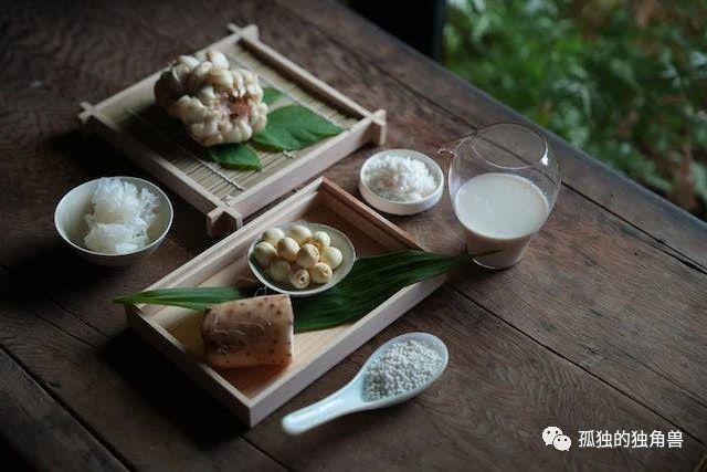 一口浓甜的龙眼,配上稠滑的粥底,有时遇上白木耳的Q弹,有时遇上莲子、百合的脆口,一碗粥层次分明,虽然淡雅,却很有起伏。从莲蓬剥出的新鲜莲子不算在内的话,这个月没有介绍太稀奇古怪的食材。但想与大家分享这一碗可能有点有趣的,六白粥。
