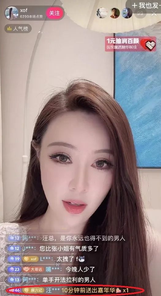 网友说汪小菲又跑去另一位网美直播间抖内(红圈处)