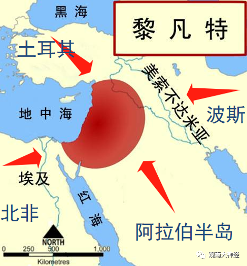 北边的叙利亚和黎巴嫩等地打包分给法国;