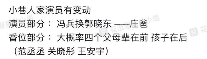 这部戏的番位挺明确的,《小巷人家》是年代剧,番位也是按照辈分排名,父母在前,子女在后,范丞丞和关晓彤加盟此剧的消息其实早就传出来了,正午的饼一向都是香饽饽,谁也想多吃一口蛋糕,因此刚冒出点风头范丞丞和关晓彤两家粉丝就因为抢番位而吵起来了,还闹到了正午那里,导致此剧迟迟无法官宣。