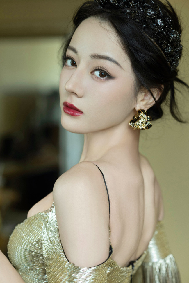 10月15日,迪丽热巴工作室晒出了一组迪丽热巴身穿鎏金裙的造型图。