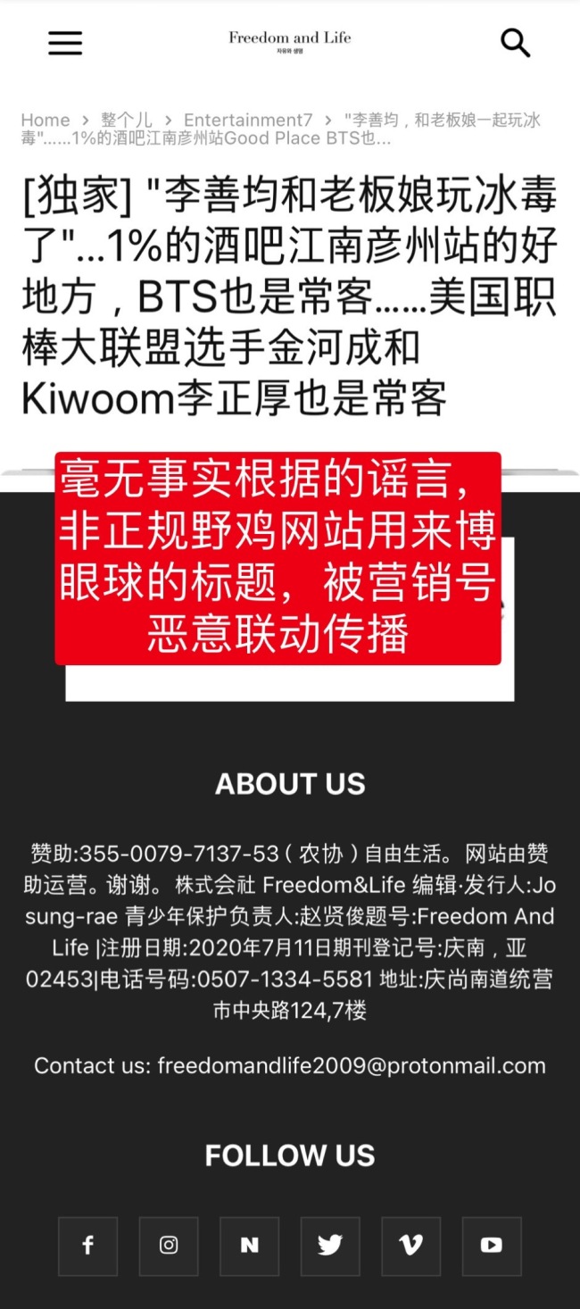 随后, 防弹少年团后援会也下场【紧急澄清】对于“韩媒报道防弹少年团部分成员是李善均吸毒场所常客”完全不属实!