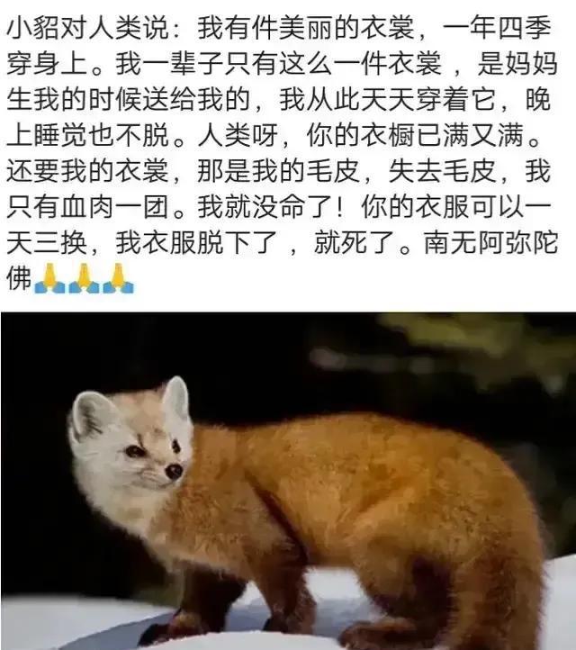 人不穿皮草不会死,而动物没了皮毛却要死去。